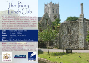 The Priory Lunch Club, organised by Frettens Solicitors and P H Warr plc, held it's final event of 2008.